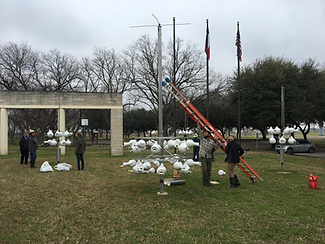 In February 2001, we hung the first plastic gourds from the light poles outside the Austin Water Center for Environmental Research. All were immediately occupied, and the Hornsby Bend purple martin colony had begun. In 2002, a 12 gourd rack was added and successfully attracted even more purple martins. In 2003, Julia and Andy Balinsky volunteered to be the stewards of the Hornsby Bend colony. They actively managed the colony through 2024 and continue to assist new volunteers. Each week during the breeding season, volunteers carefully count eggs and nestlings then record data for the Purple Martin Conservation Association. This dedicated team also cleans, repairs and takes steps to protect adults and nestlings from predators and any other threats.